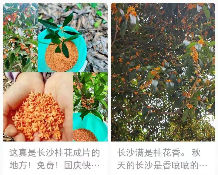 桂花除了可与舌尖产生联系,更是吸引人们外出的一大利器。例如长沙烈士公园、长沙桂花公园、宁乡玉潭公园等纷纷借着自己香满园的桂花吸引游客到来。