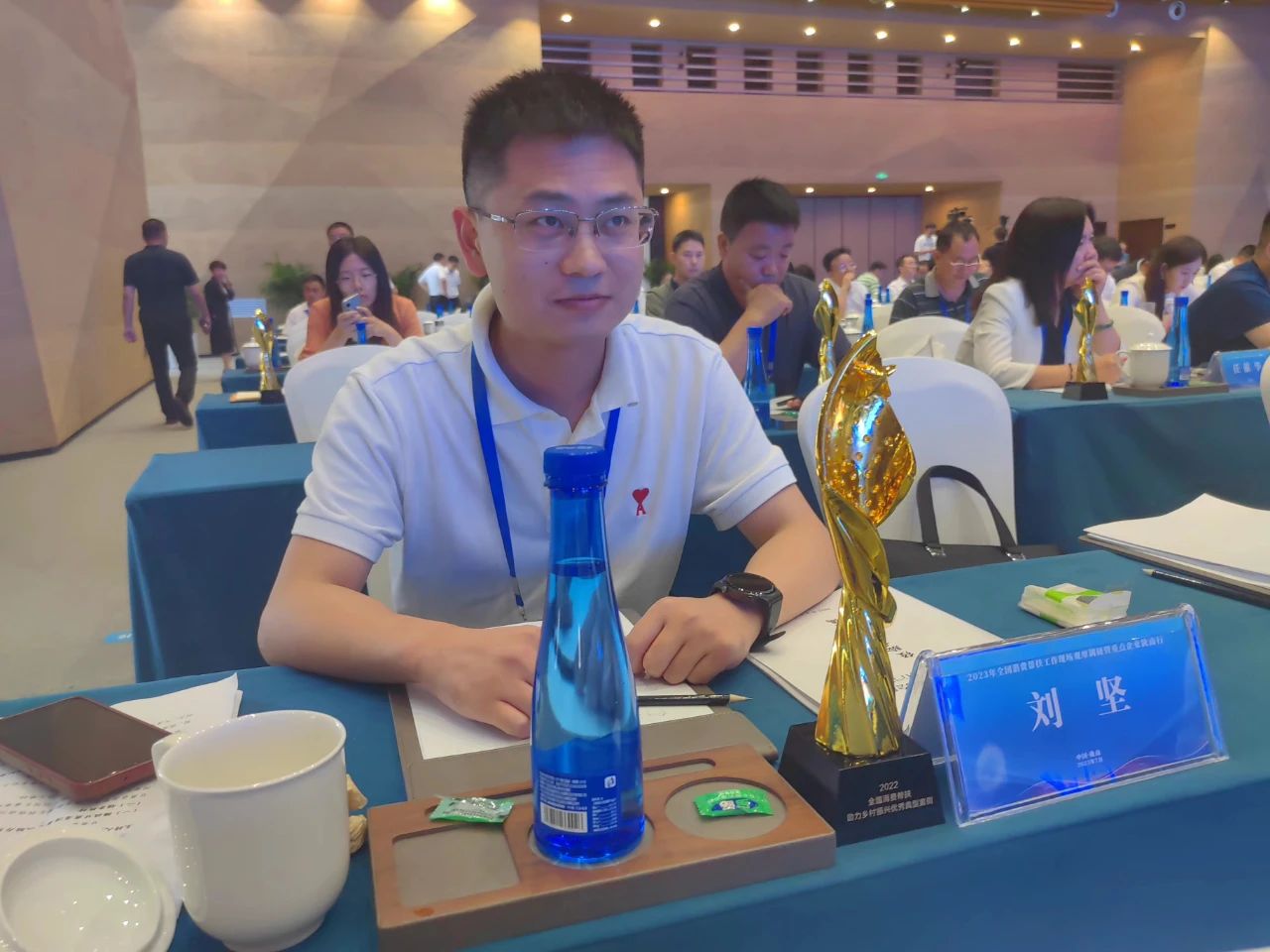 湖南省市场营销协会秘书长刘坚受省商务厅委托参加会议,并上台领取2022年优秀典型案例纪念杯。