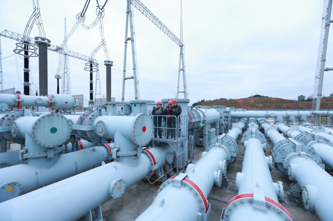 (12月16日,在1000千伏交流特高压潇湘站,国网湖南超高压变电公司运维人员正在开展迎峰度冬保电特巡。彭庆 摄)