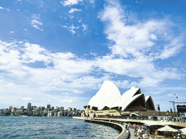 (蓝天白云下,美丽的悉尼海港。孟君 摄)