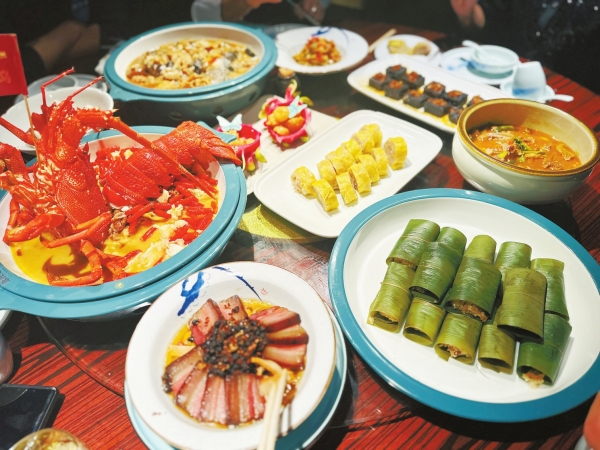 “快看!澳洲龙虾居然还能这么做!”由汇泽良湘宴制作的“澳龙潇湘情”,将澳洲龙虾与湘乡叫堂鸡结合,在鲜味中突出了湘菜的热辣与香气。