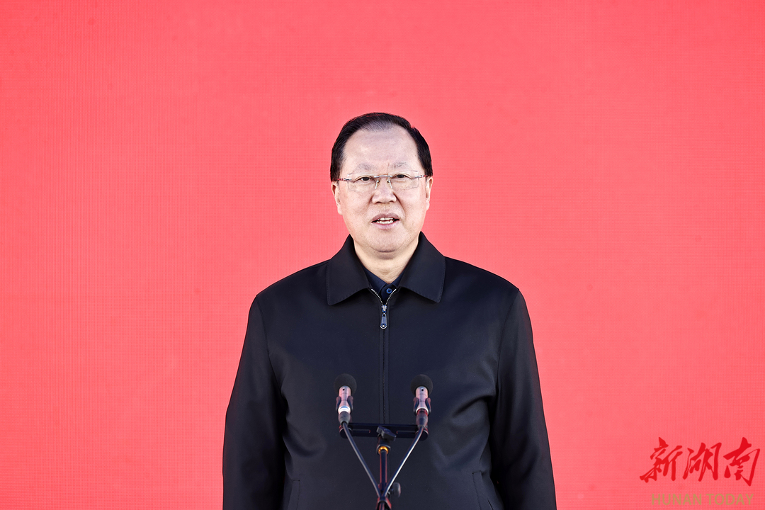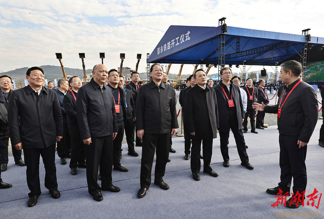 仪式上,毛伟明代表湖南省委、省政府向邵永高速铁路开工建设表示祝贺,向国铁集团长期以来对湖南的大力支持表示感谢。他说,在毛泽东同志诞辰130周年的特殊日子里,我们开工建设以邵永高速铁路为代表的重大项目,是贯彻习近平总书记关于交通运输重要论述的生动实践,是落实中央经济工作会议精神的实际行动,是以建设现代化新湖南的实业实绩,深情告慰伟人,不负时代重托。作为呼南高铁的重要一段,邵永高铁是湘南、湘中高铁成网的关键节点,建成通车后必将有力促进我省融入西部陆海新通道和粤港澳大湾区,有力提升湘南、湘西承接产业转移能力,有力推动全省高质量发展。
