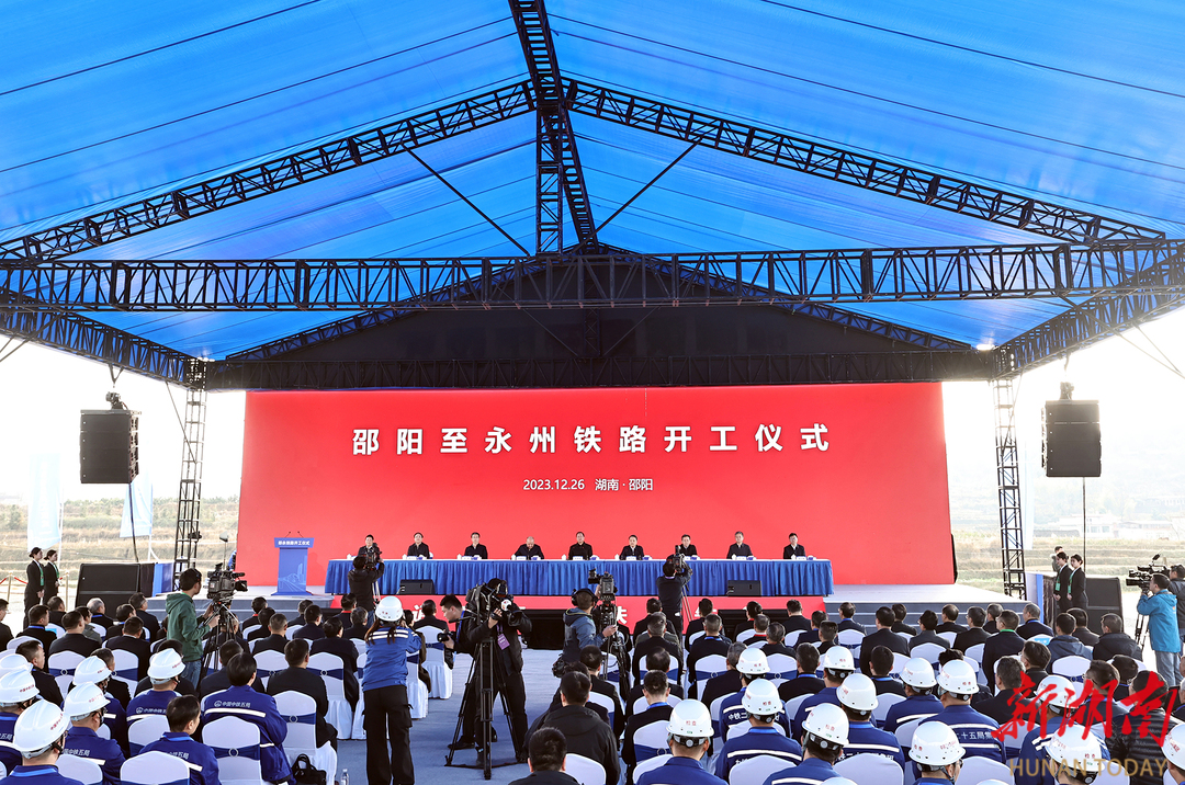 (12月26日下午,邵永高铁在邵阳、永州同步举行开工仪式,省委副书记、省长毛伟明在邵阳会场宣布项目开工。)