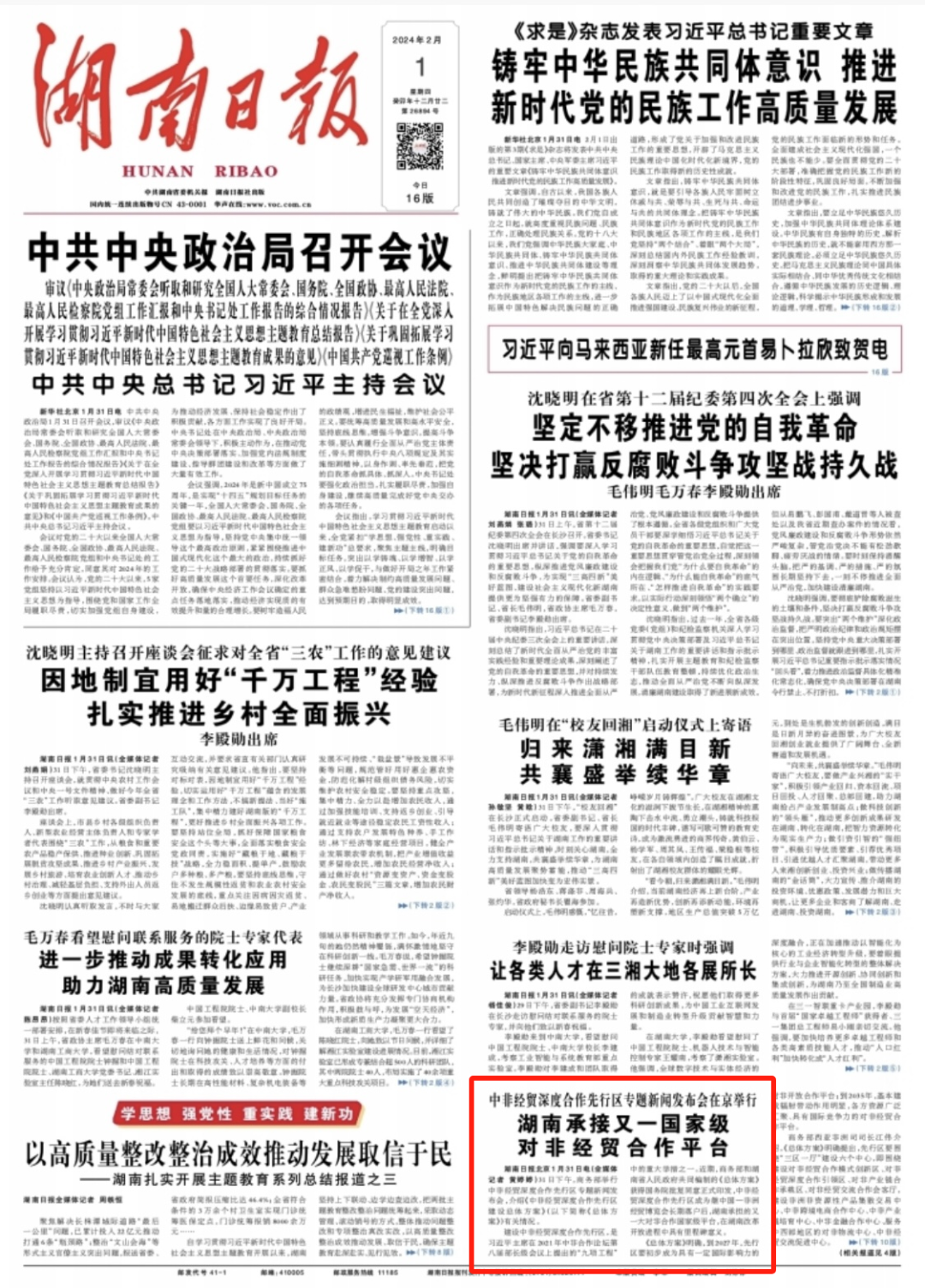 同时,先行区将依托中国(湖南)自由贸易试验区,积极开展对非经贸合作政策的先行先试和差异性探索;充分发挥湖南的产业优势、区位优势,建设地方对非合作“试验田”,在更大范围内复制推广,推动形成“头雁效应”。