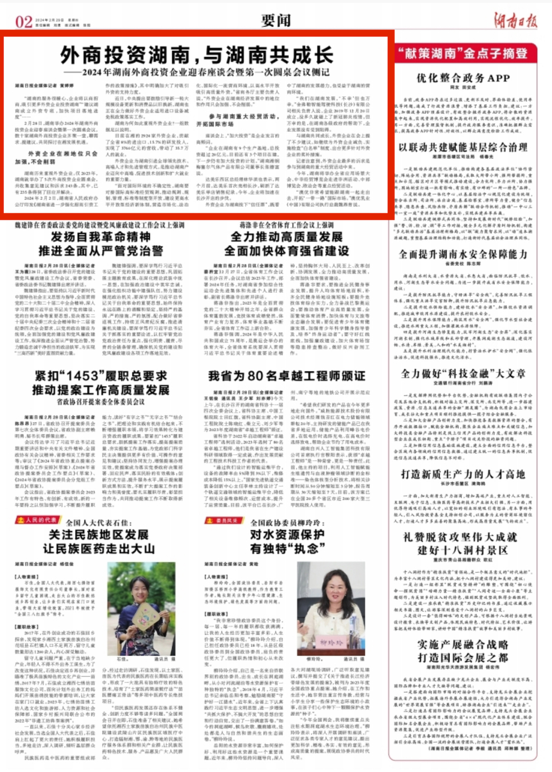 2月28日,湖南举办2024年湖南外商投资企业迎春座谈会暨第一次圆桌会议,数十家湖南外商投资企业齐聚一堂,聊需求、提建议,共同探讨在湘发展机遇。