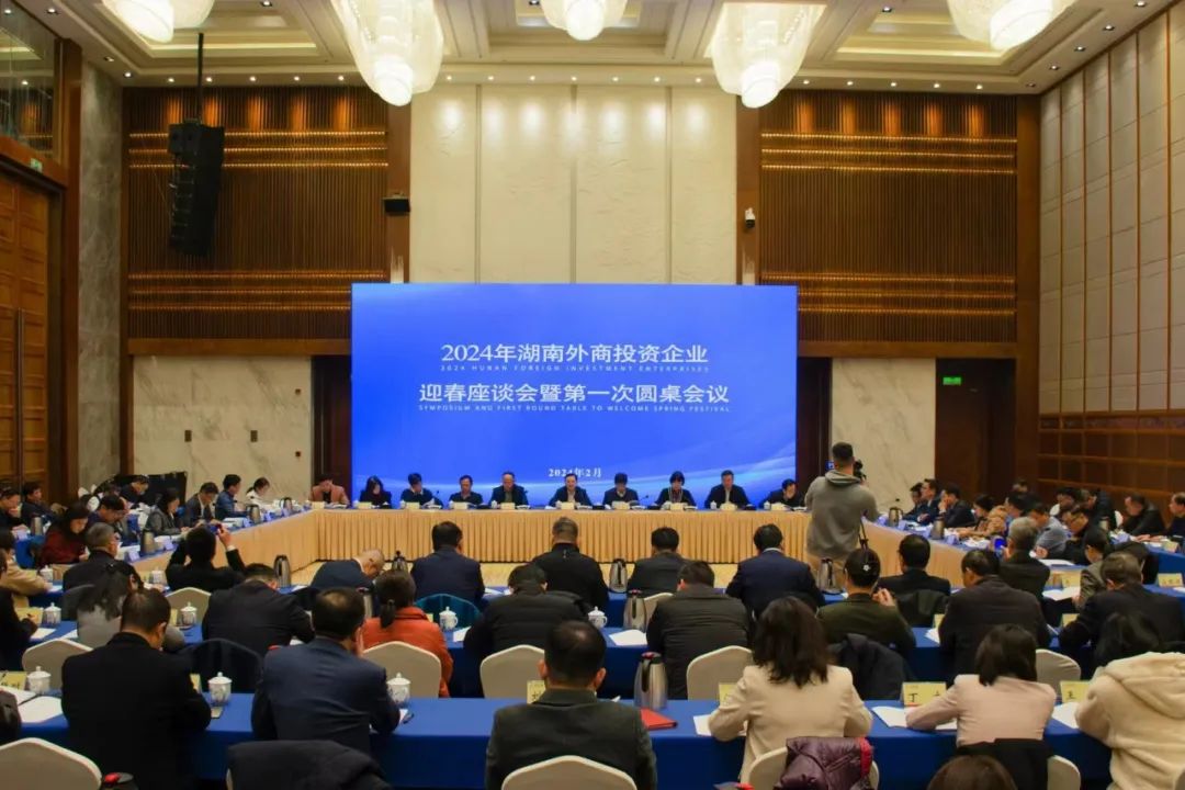 2月28日下午,省商务厅党组书记、厅长沈裕谋主持召开2024年湖南省外商投资企业迎春座谈会暨第一次圆桌会议,部分省直和中央在湘单位负责人以及近40家外商投资企业、境外地区政府及商协会驻湘机构代表参加。