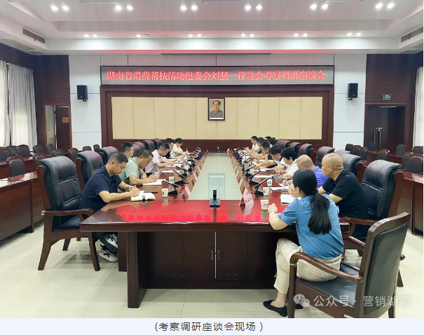 当天下午,调研团队与会同县政府及相关部门、企业举行了座谈会。在座谈会上,刘坚主任详细询问了会同县在消费帮扶方面的具体做法和取得的成效。当地企业负责人也依次介绍了企业的相关情况,并提出了对于消费帮扶活动的需求和建议,以及在营销过程中遇到的困难和挑战。