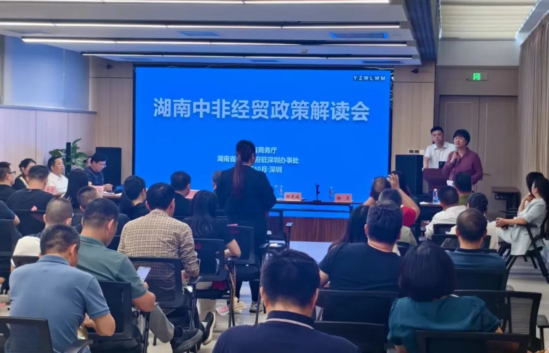 10月11日下午,省商务厅、省政府驻深圳办事处在深圳联合召开湖南中非经贸政策解读会。近百名大湾区湘籍企业家齐聚一堂,共同探讨中非经贸合作机遇与挑战。省商务厅党组成员、副厅长郭宁,省政府驻深圳办事处党组成员、副主任谢潇波出席会议。