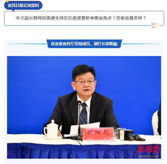农业机械报废更新补贴从2020年开始实施。近期,根据国家大规模设备更新和消费品以旧换新部署安排,省农业农村厅联合省发改委、省财政厅出台了《湖南省持续实施好农业机械报废更新补贴政策方案》。与之前政策相比,新一轮农机报废更新补贴范围更宽、额度更高、办理更便捷。
