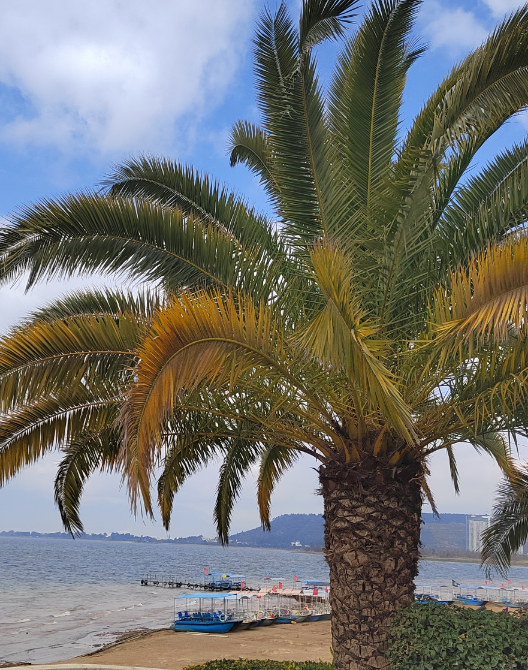 在抚仙湖的柔波里,我找回了失落已久的童心。这里,碧水如镜,倒映着蓝天白云,仿佛是大自然精心打造的画框,将天地间的美景一一镶嵌。我与小孙子量量携手漫步湖畔,感受着湖风轻拂脸颊的温柔,聆听着湖水潺潺的低语,心中涌动的是对这片美景无尽的喜爱与向往。