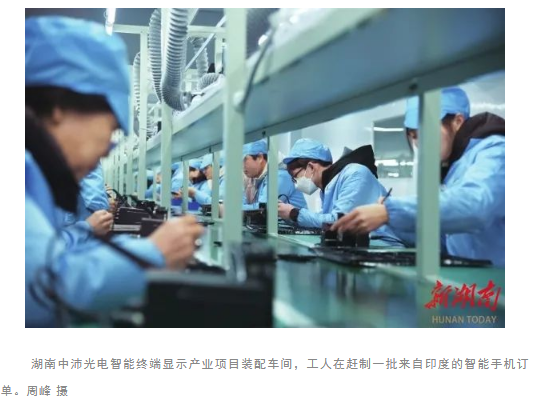 2月11日,郴州市北湖区的湘南光电产业园二期,湖南中沛光电有限公司的生产线已试投产,300多名工人正赶制来自印度的智能手机订单。