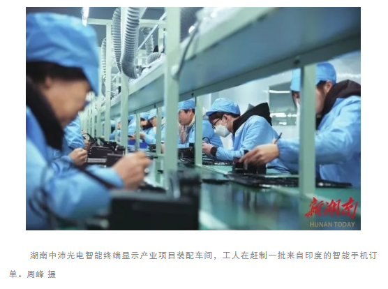 2月11日,郴州市北湖区的湘南光电产业园二期,湖南中沛光电有限公司的生产线已试投产,300多名工人正赶制来自印度的智能手机订单。