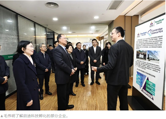 毛伟明一行了解企业创新孵化、人才培育等情况,指出要聚焦“4×4”现代化产业体系建设,充分发挥企业的科技、人才和平台优势,促进成果转化与产业升级,加强国际合作与人才交流,孵化更多“独角兽”和“小巨人”企业,助力长沙打造全球研发中心城市。