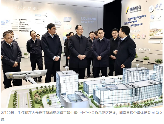去年7月,史明德见证了德国中小企业总部集聚区(湖南)在湖南湘江新区揭牌。他表示,“很高兴看到湖南正在开辟一条以产业合作为基础、以中小企业合作为亮点、以科技创新为动力的对德合作新模式。”