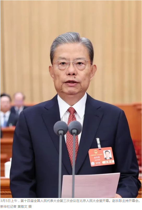 上午9时,赵乐际宣布:中华人民共和国第十四届全国人民代表大会第三次会议开幕。会场全体起立,高唱国歌。
