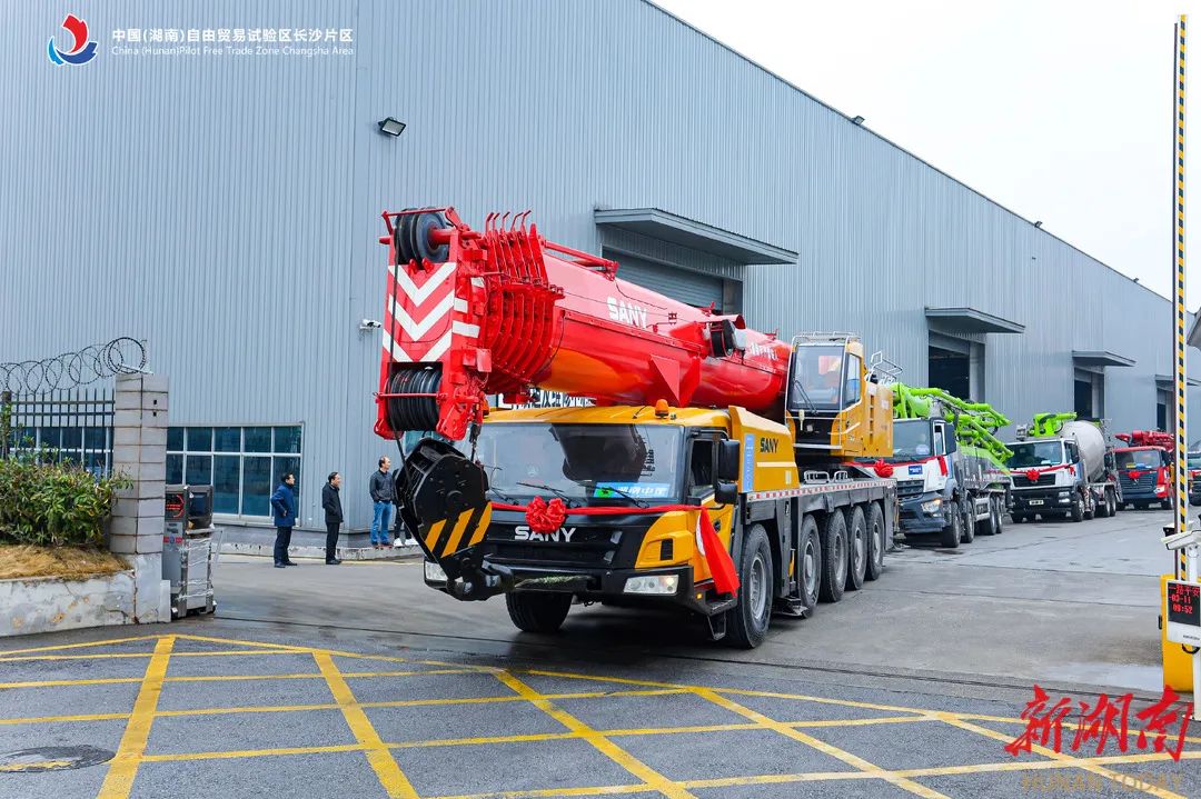 基地揭牌后,来自三一集团、中联重科、山河智能等企业的566台设备集中发车,涵盖挖掘机、泵车、旋挖钻机等10余个品类,总价值5.51亿元,销往东南亚、非洲、中亚、中东等数十个国家和地区。