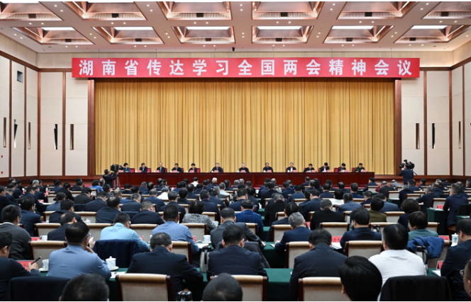 毛伟明在主持时说,要深刻领会抓落实。把学习全国两会精神与贯彻习近平总书记关于湖南工作的重要讲话和指示批示精神结合起来,做到思想上合心、工作上合力、行动上合拍,推动各项事业全面发展、全面进步。要对标要求抓落实。围绕经济大省挑大梁、教育科技人才一体发展等,发挥湖南优势,加快培育发展新质生产力,在全国发展大局中彰显更大担当。要结合当前抓落实。强化机遇意识、服务意识、攻坚意识,加快对接落实重大政策、重大项目、重大资金、重大改革,以一季度良好开局确保全年经济持续向好。