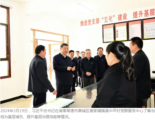 十年后的春天。2024年3月,湖南常德港中坪村,村党支部书记段德喜向总书记汇报:村部最多时有38块牌子,现在12块;微信工作群从最多时的30多个减为现在的4个。窥一斑,知全貌。
