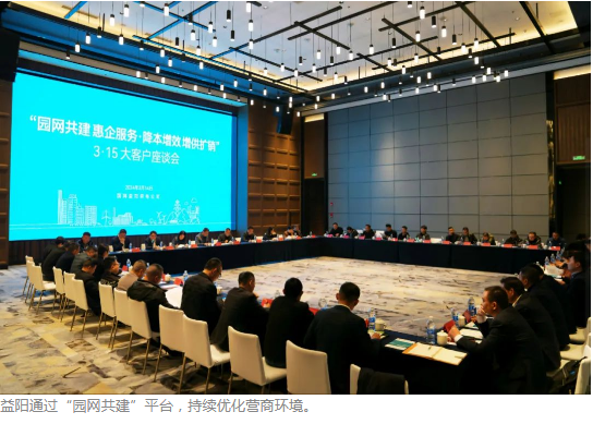 “园网共建”政企合作模式,即园区、企业、供电公司三方建立联络机制,逐一疏通园区办电、供电、保电、管电、用电过程中存在的痛点、堵点,实现“共建、共享、共赢”发展。2023年,益阳市9家省级及以上产业园区均参与“园网共建”平台。