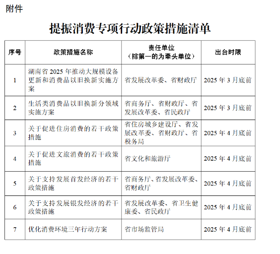 湖南省提振消费专项行动方案