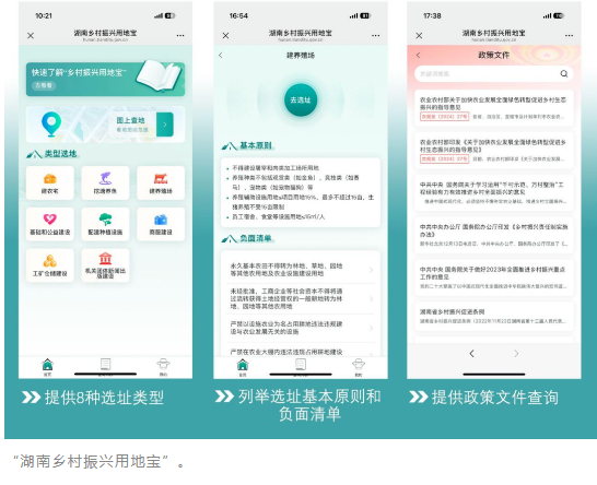 除数据分析服务外,“湖南乡村振兴用地宝”还提供政策法规解读、审批流程指引等特色功能,帮助用户及时掌握政策动态,提升用地申请效率,有效解决乡村发展用地中遇到的政策和法律难题。