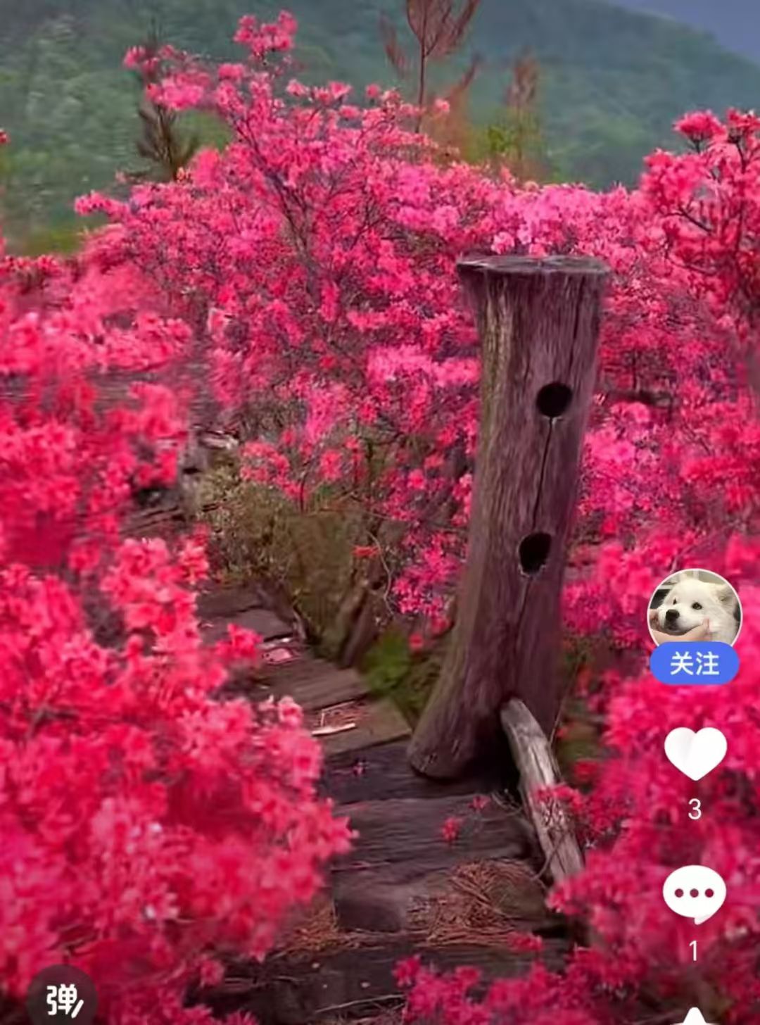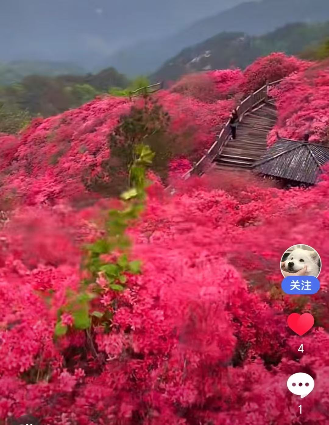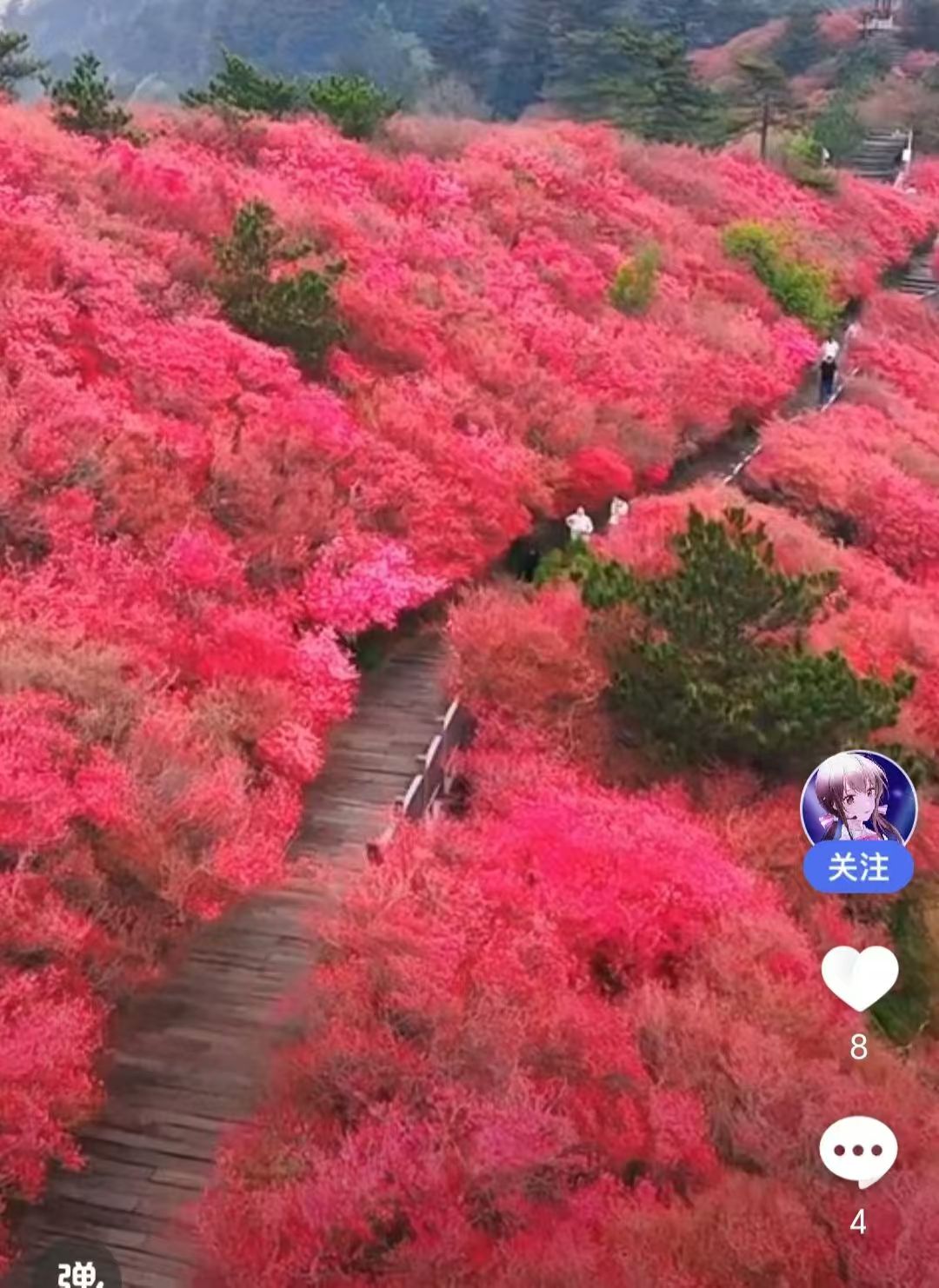 阳明山巅红霞漾,杜娟争艳韵悠长。