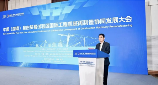 5月16日上午,中国(湖南)自由贸易试验区国际工程机械再制造协同发展大会在长沙举行。活动由湖南省商务厅、长沙市人民政府主办,湖南省人民政府副省长曹志强出席并致辞,湖南省商务厅厅长沈裕谋主持。马来西亚标准工业规格局局长拿督阿末沙比林,海南省工业和信息化厅厅长邓立松,湖南省人民政府办公厅副主任陈卓懿,湖南省工业和信息化厅副厅长刘卫东,湖南省市场监管局总工程师李丁,湖南省贸促会副会长罗专,长沙市委常委、自贸区长沙片区党工委书记周敏,长沙市人民政府副市长康镇麟、岳阳市人民政府副市长段宁及省内外工程机械龙头企业、商协会、金融机构代表等参加活动。