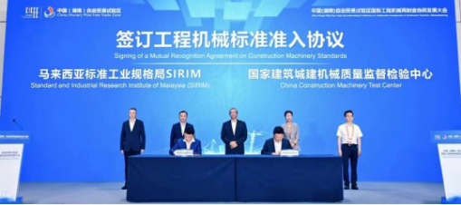 活动现场,湖南省与海南省联合发布《出口工程机械二手设备评估通则》及《出口工程机械二手设备评估服务规范》两项地方标准。马来西亚标准管理部门与国家建筑城建机械质量监督检验中心签订了工程机械标准准入协议。
