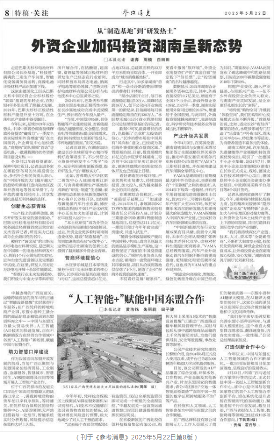 拥抱产业变化,融入产业链条,布局新兴产业……在不少外商投资企业负责人看来,与湖南产业共同发展,是企业更好扎根生长的“密码”。