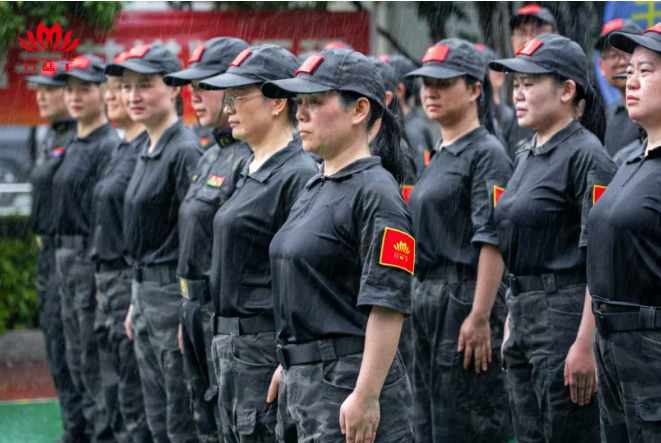 注:全诗以军事化意象构建企业精神图谱,通过"战鼓""铁血""钢梁"等刚毅词汇展现军训强度,以"槟榔丹心""口味魂"巧妙植入企业文化内核。末段"战袍映日辉"既呼应迷彩服蜕变职业装的仪式感,"射天狼"的豪迈收束更彰显征战市场的雄心,契合企业"砺兵强纪磨利刃"的核心诉求。