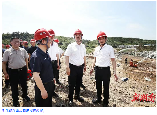 6月16日,临澧县山洲烟花有限责任公司发生爆炸事故,造成多人伤亡。17日上午,省委副书记、省长毛伟明赶赴事故现场指挥救援和善后工作,看望慰问受伤人员。他强调,要坚决贯彻习近平总书记关于安全生产的重要论述,按照李强总理、张国清副总理等中央领导批示要求,扎实做好现场处置,全力以赴救治受伤人员,举一反三开展隐患排查整治,坚决守牢安全生产底线,维护好人民群众生命财产安全。