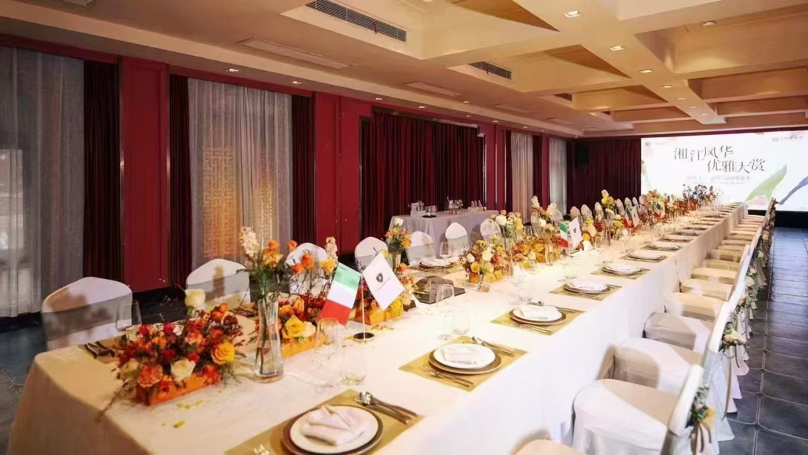 在这里,环境优美得如同世外桃源。窗外绿树成荫,湘江风光若隐若现,室内整洁得一尘不染,桌椅摆放整齐有序,灯光调试到最舒适的亮度,轻柔音乐在空气中流淌。无论是情侣约会时的窃窃私语,还是亲友团聚时的欢声笑语,都被这氛围烘托得更加温馨美好。酒柜里琳琅满目的红酒,如同等待唤醒的睡美人,一旦开启,醇厚香气便弥漫开来,为餐桌增添一抹醉人的风情。