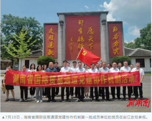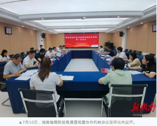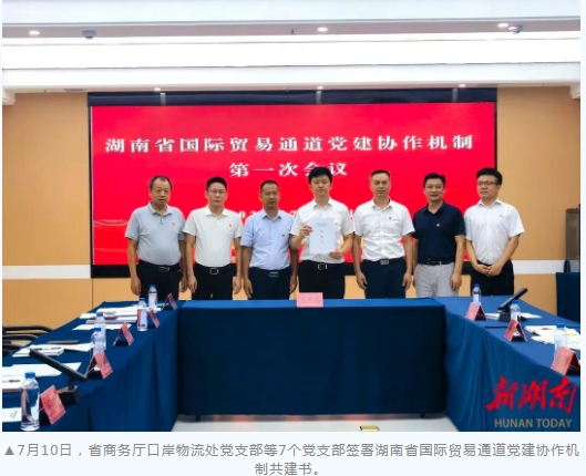 7月10日,湖南省国际贸易通道党建协作机制会议在怀化市召开,省商务厅口岸物流处党支部等7个党支部签署湖南省国际贸易通道党建协作机制共建书,旨在通过党建协作,支持全省国际贸易通道规划和建设,推进国际贸易通道提质增效。