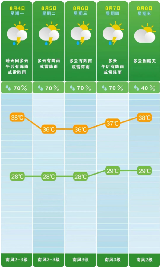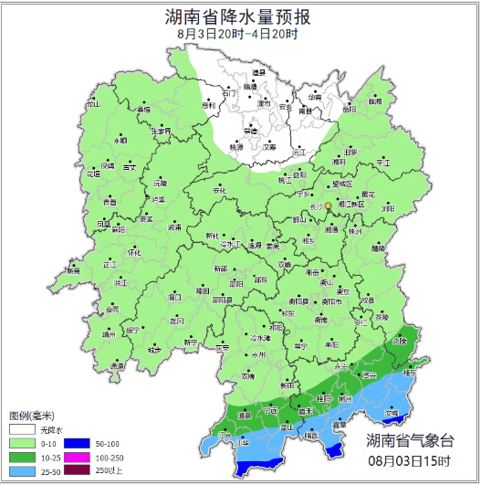 此外,省气象台预计,未来三天湘中以南多小到中等阵雨或雷阵雨,局地暴雨。其中,4日白天,全省大部分地区多云有阵雨或雷阵雨,永州南部、郴州中南部和株洲南部部分地区中雨,局地大到暴雨;