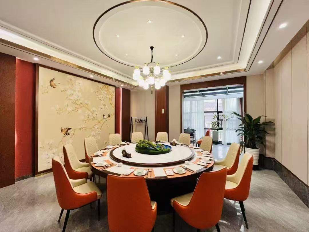 踏入清溪阁的那一刻,仿若跌进了一幅水墨长卷。青瓦飞檐挑着半片流云,朱栏外的梧桐正抖落着夏日最后的碎影,廊下的铜铃轻吟着迎接我们的曲调。侍者引着我们穿过缀满凌霄花的回廊,茶烟袅袅间,木质案几已摆好新采的君山银针,嫩绿的芽尖在沸水中舒展,恰似我们这些创业者曾被岁月揉捻却愈发坚韧的人生。