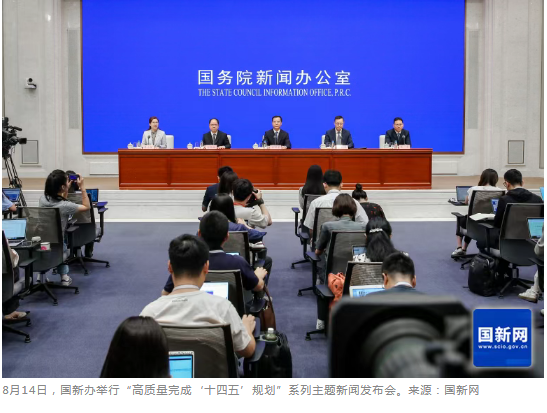 8月14日,国务院新闻办公室举行“高质量完成‘十四五’规划”系列主题新闻发布会,介绍“十四五”时期数字中国建设发展成就。