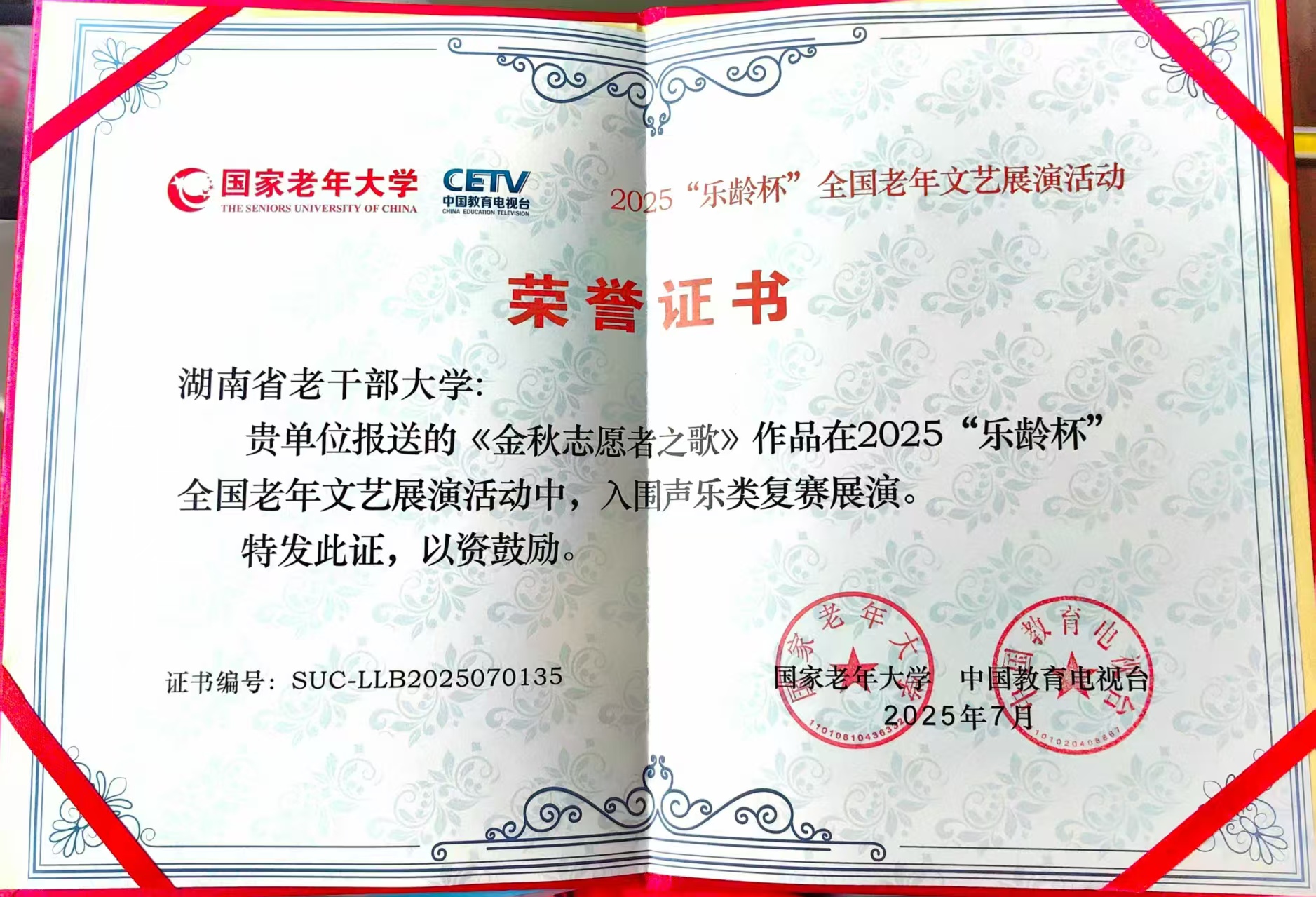 在岁月的长河中,总有一些瞬间,如同璀璨星辰,照亮前行的道路;总有一些身影,似温暖阳光,传递着爱与希望。8 月 27 日上午,湖南省老干部大学金志愿者队伍在孙红队长的带领下,怀揣着对艺术的热爱与对志愿精神的坚守,走进岳阳,开启了一场意义非凡的旅程——参加《乐龄杯》2025 全国老年文艺展活动。这不仅是一场文艺的盛会,更是一次银龄风采的精彩展示,一段晚晴岁月里筑就的华章。
