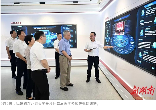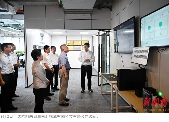 沈晓明先后来到湖南汇视威智能科技有限公司、北京大学长沙计算与数字经济研究院、国网湖南电力公司带电作业与智能巡检技术装备基地,深入了解人工智能创新创业、关键技术突破和应用、赋能电力行业发展等情况。