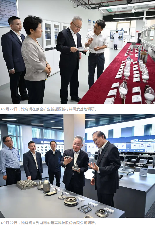在紫金矿业新能源新材料研发基地和湖南华曙高科技股份有限公司,沈晓明深入了解企业研发中心建设、前沿技术研发、投资扩产增效等情况。他指出,要持续推动长沙全球研发中心城市建设,积极推进科创平台和先进科研仪器设备开放共享,促进更多科创成果找到有市场空间的应用场景,不断提升企业核心竞争力。