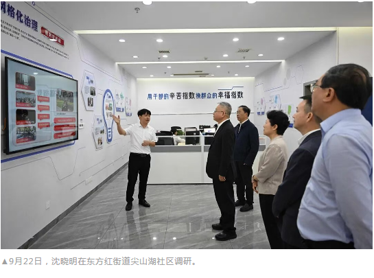 走进东方红街道尖山湖社区,沈晓明察看政务服务窗口、新就业群体服务驿站、老年食堂等,了解便民服务、群众信访问题化解、社区治理模式创新等情况,指出要坚持以党建引领基层社会治理,加强普惠性、基础性、兜底性民生建设,努力为群众提供可持续的优质服务。