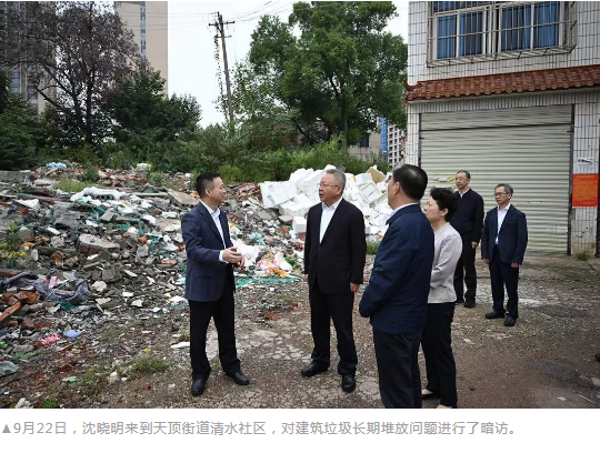 沈晓明还来到天顶街道清水社区,对建筑垃圾长期堆放问题进行了暗访,要求立行立改、健全机制,妥善解决垃圾清运不及时的问题,不断优化人居环境。