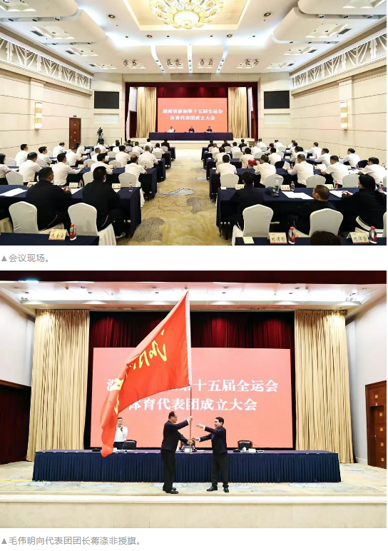 第十五届全国运动会将于11月9日至21日在广东、香港、澳门三地举行。10月13日上午,湖南省参加第十五届全运会体育代表团在长沙成立。省委副书记、省长毛伟明向代表团授旗,并作动员讲话。
