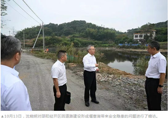 沈晓明还对邵阳经开区因道路建设形成3处堰塞湖带来安全隐患的问题进行了暗访,要求实事求是研究解决办法,举一反三加强对“十五五”时期基础设施建设的科学规划,加大对施工单位的监督指导,避免在建设过程中产生损害群众利益的问题。