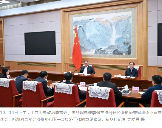 中共中央政治局常委、国务院总理李强10月14日下午主持召开经济形势专家和企业家座谈会,听取对当前经济形势和下一步经济工作的意见建议。