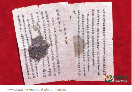 这份带着血迹的入党申请书,成为连队薪火相传的精神火炬。每逢新兵入营、新干部下连或重大任务出征前,连队都会在这份入党申请书前举行宣誓仪式,教育引导官兵传承红色基因,担当强军重任。